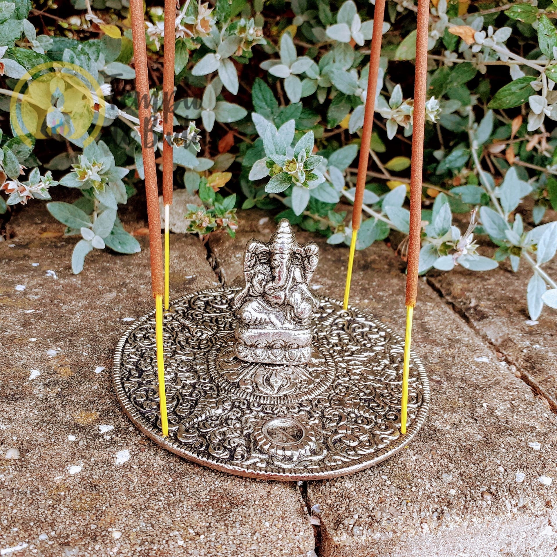 Incensário Ganesha de cor prata com 4 Orifícios para varetas de incenso e também para 1 cone de incenso.