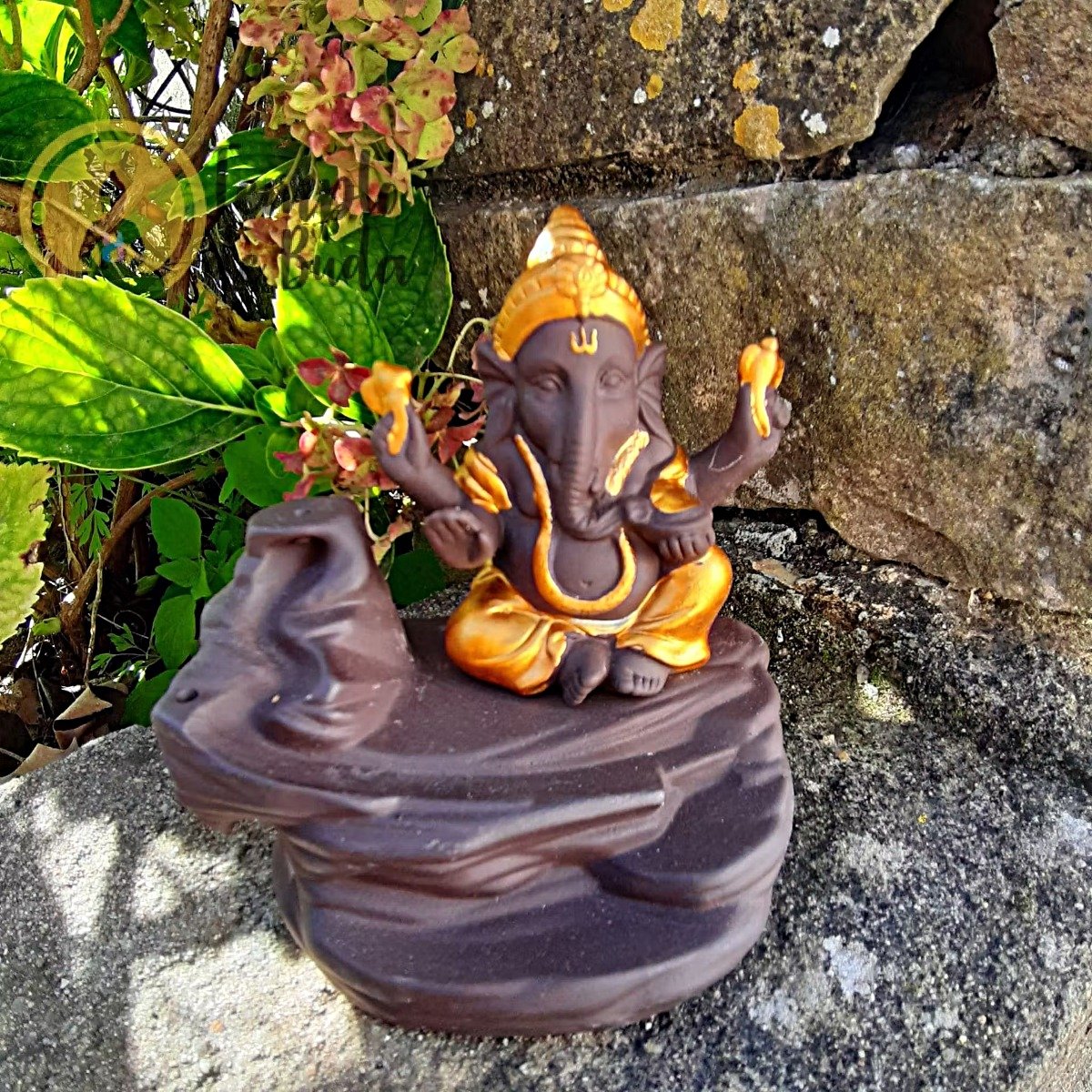 A Cascata de Fumo Ganesha é um objeto espiritual e decorativo que une arte sagrada, efeito visual meditativo e simbolismo profundo. As cascatas de fumo, também conhecidas como fontes de refluxo, utilizam uma técnica especial em que se coloca um cone de incenso de refluxo a arder, produzindo um efeito hipnotizante onde o fumo desce suavemente em forma de cascata, criando um ambiente de silêncio, contemplação e presença.