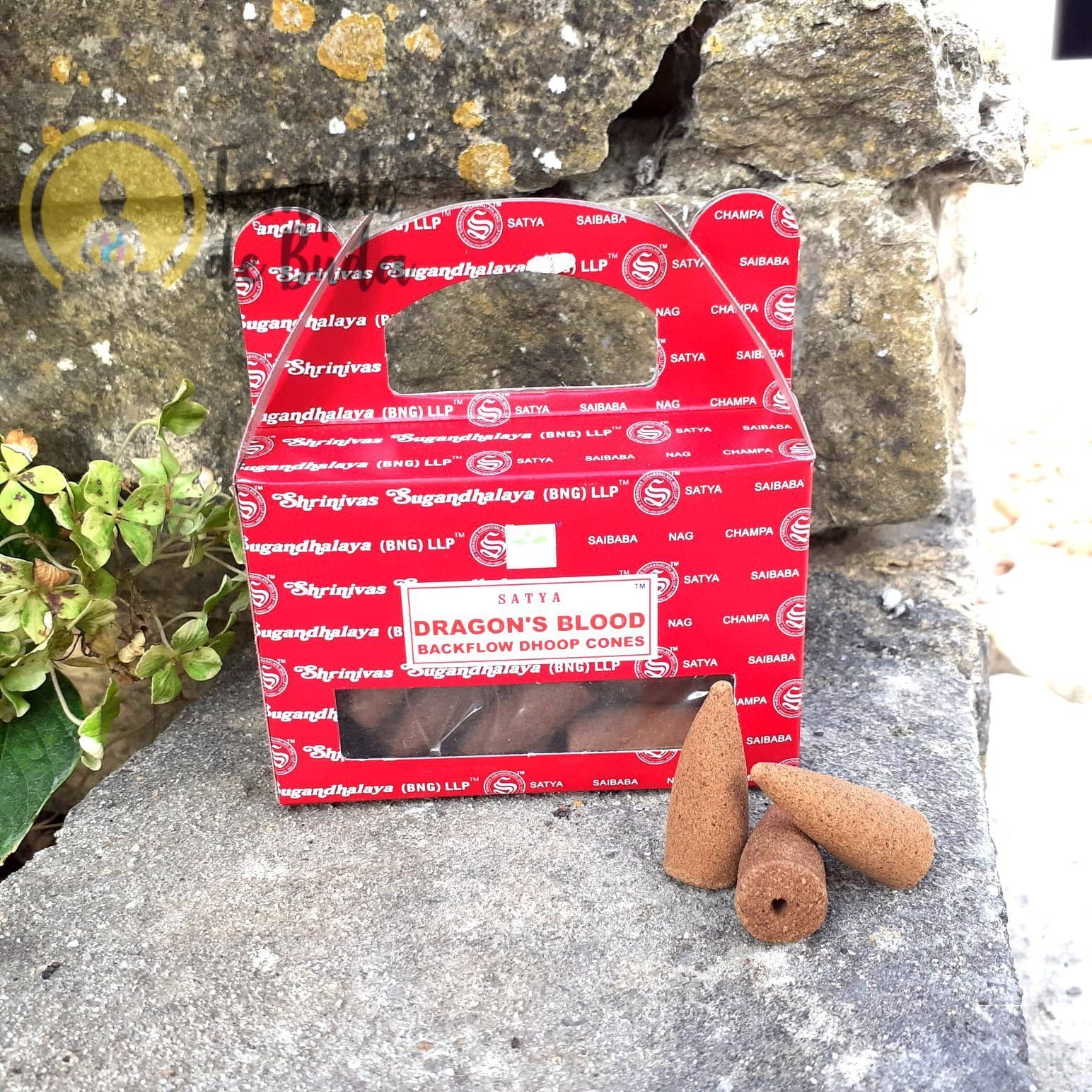 O Cones Cascata Satya Dragon’s Blood ou Sangue de Dragão é usado como estimulante e expelidor.