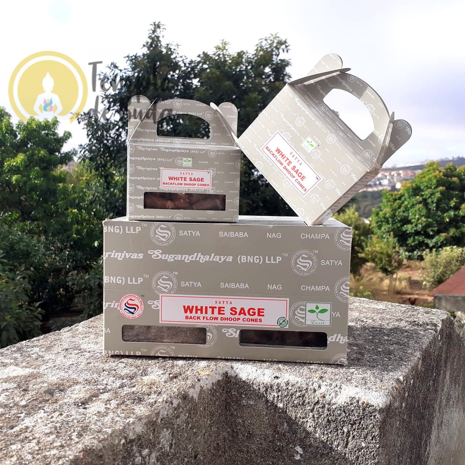 O Cones Incenso Cascata White Sage (Sálvia Branca ) é produzido pela Shrinivas Sugandhalaya (Satya) e tem como ingredientes principal a Sálvia Branca (Salvia Apiana) que é uma planta da família das mentas, usada como incenso.