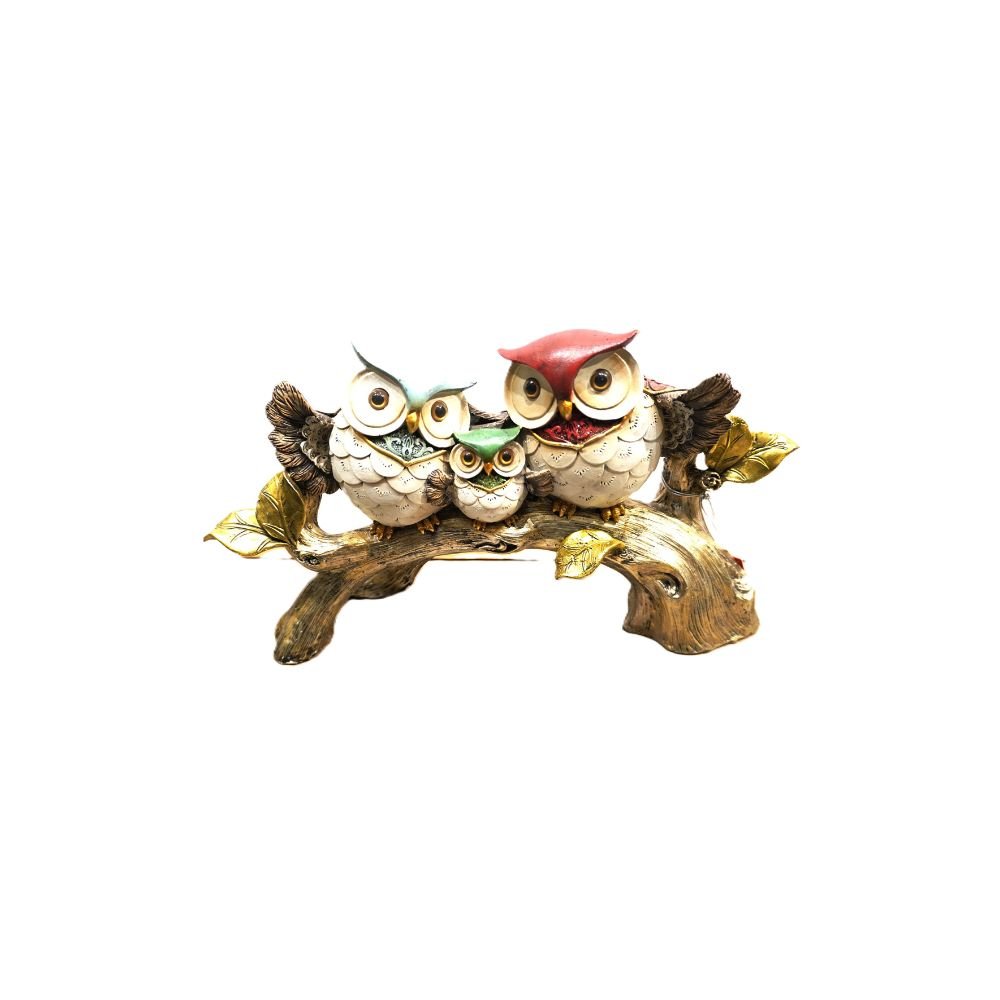 Estátua Família de Corujas Coloridas no Galho