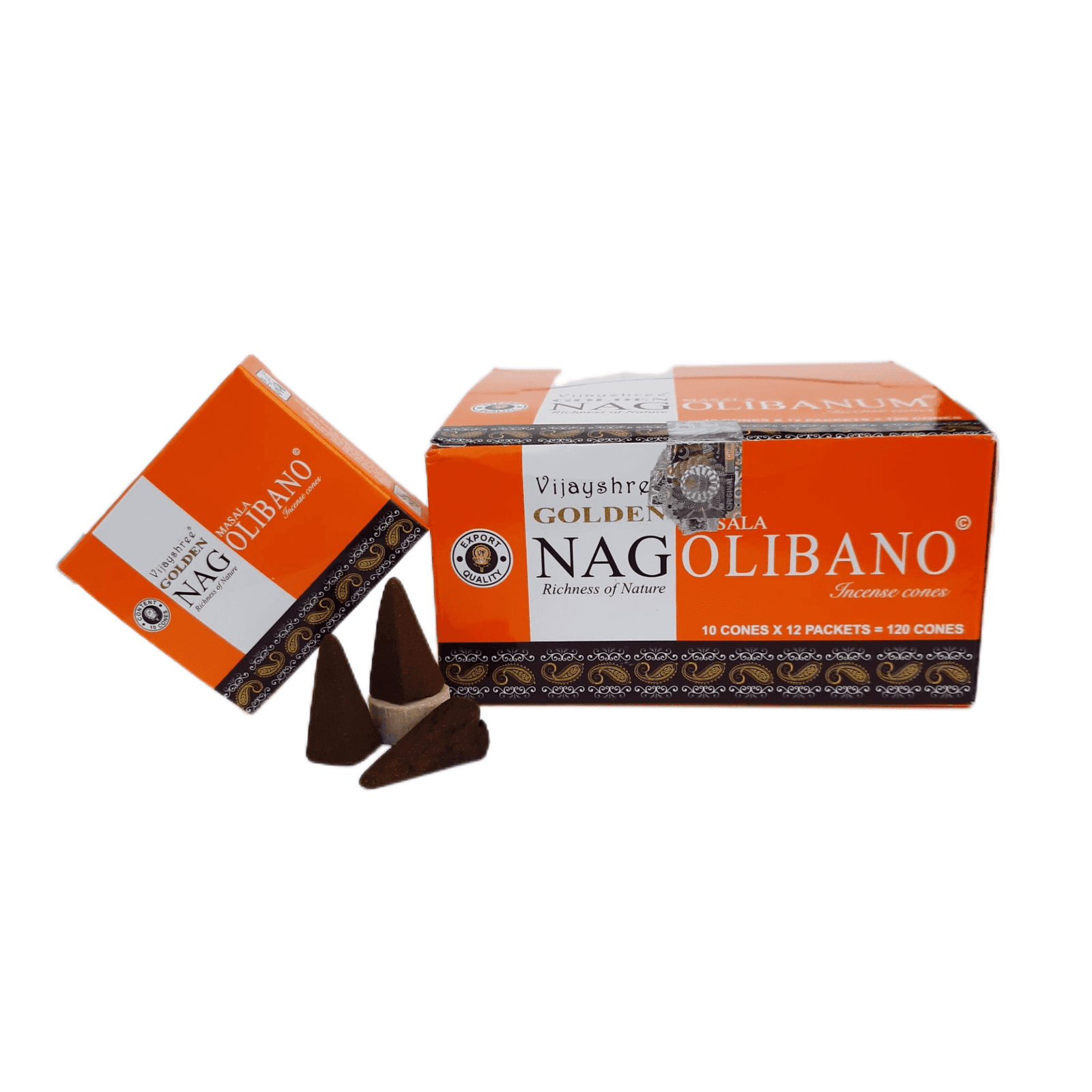 Incenso Cone Golden Nag Olibano Caixa – O Sopro Sagrado da Paz Interior