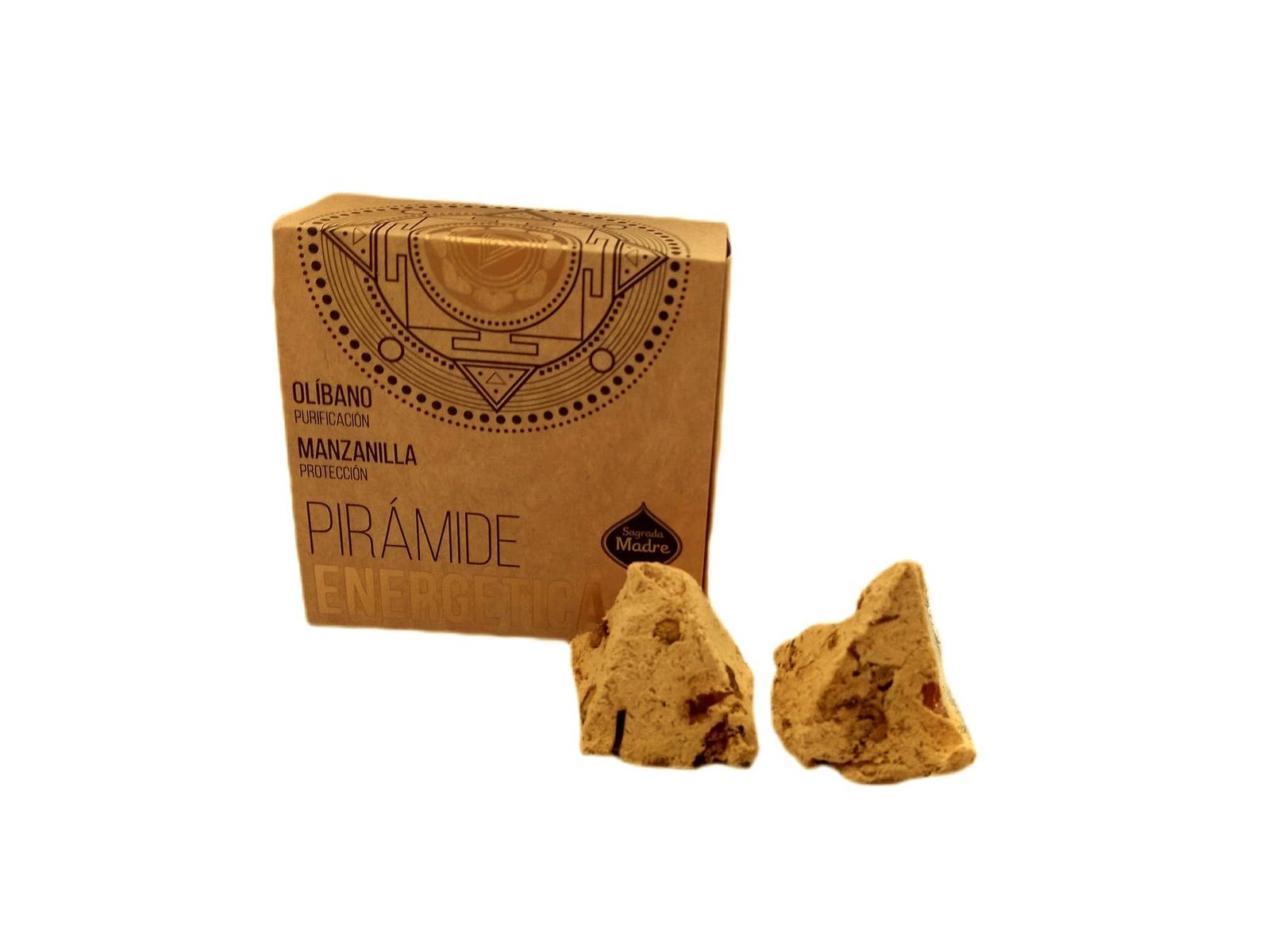 A Pirâmide Energética Sagrada Madre Olibano e Maçã é para defumar evocando o símbolo do fogo, antiga geometria divina da raça humana, conector entre o mundo celeste e o terreno; seu poder, o sol, energia de vida e transformação, condutor do poder cósmico sobre o ambiente onde é utilizado.