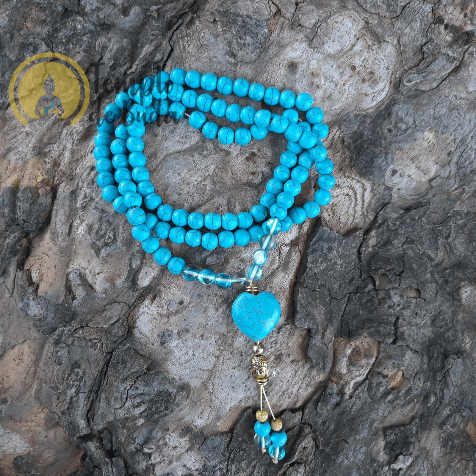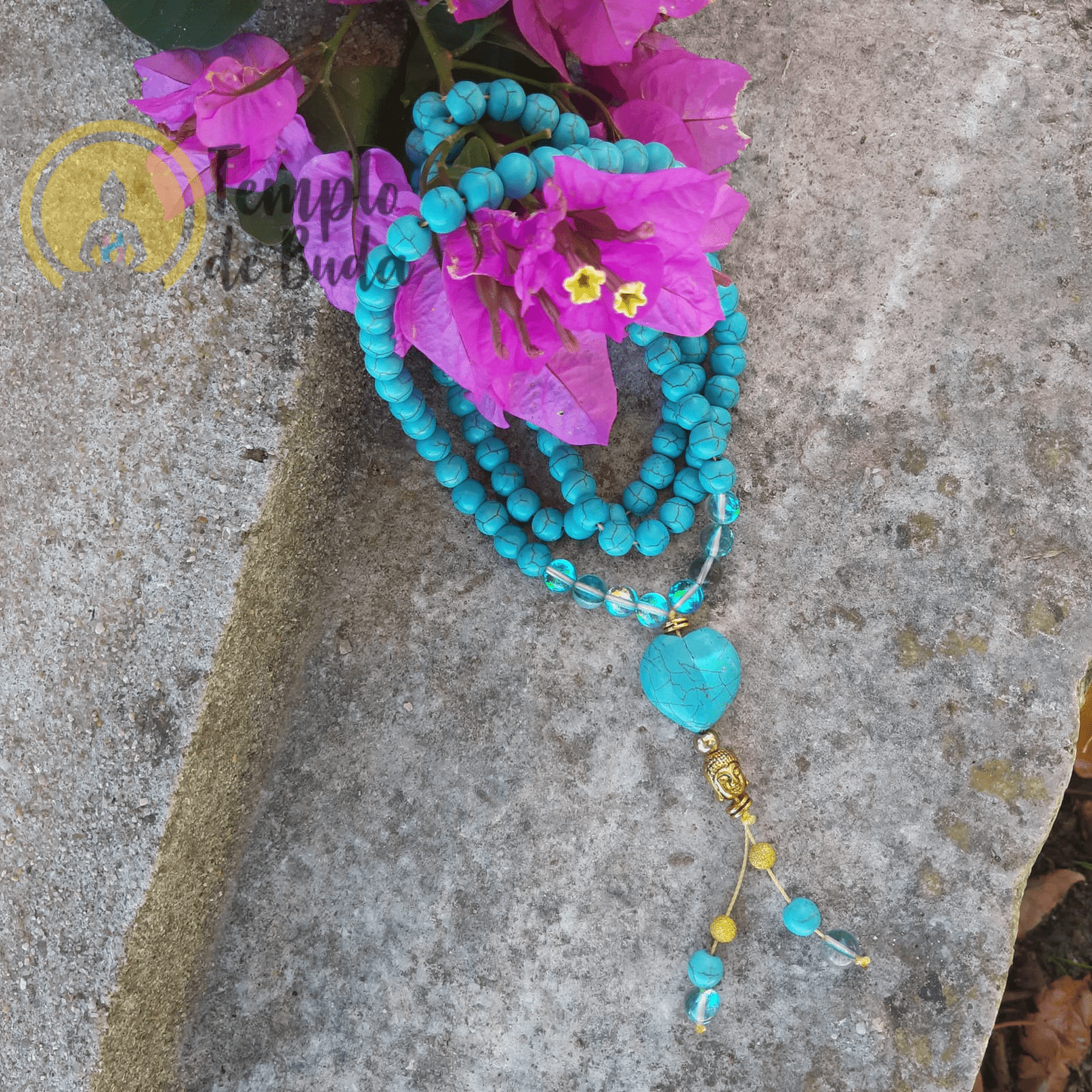 Japa Mala com contas de 8mm de Turquenita, meru em coração e Buda com pedrinhas.