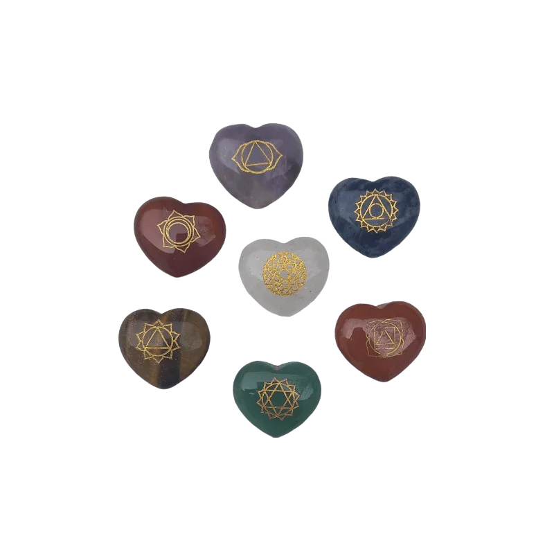 Cada chakra está fortemente ligado a uma cor específica e através das vibrações produzidas pelos cristais, é possível equilibrar, alinhar e limpar os seus sete chakras. Estes em forma de coração permitem um alinhamento mais sentido, mais pessoal e que depois nos sintamos bem connosco proprios! Para alem de serem muito bonitos mesmo !