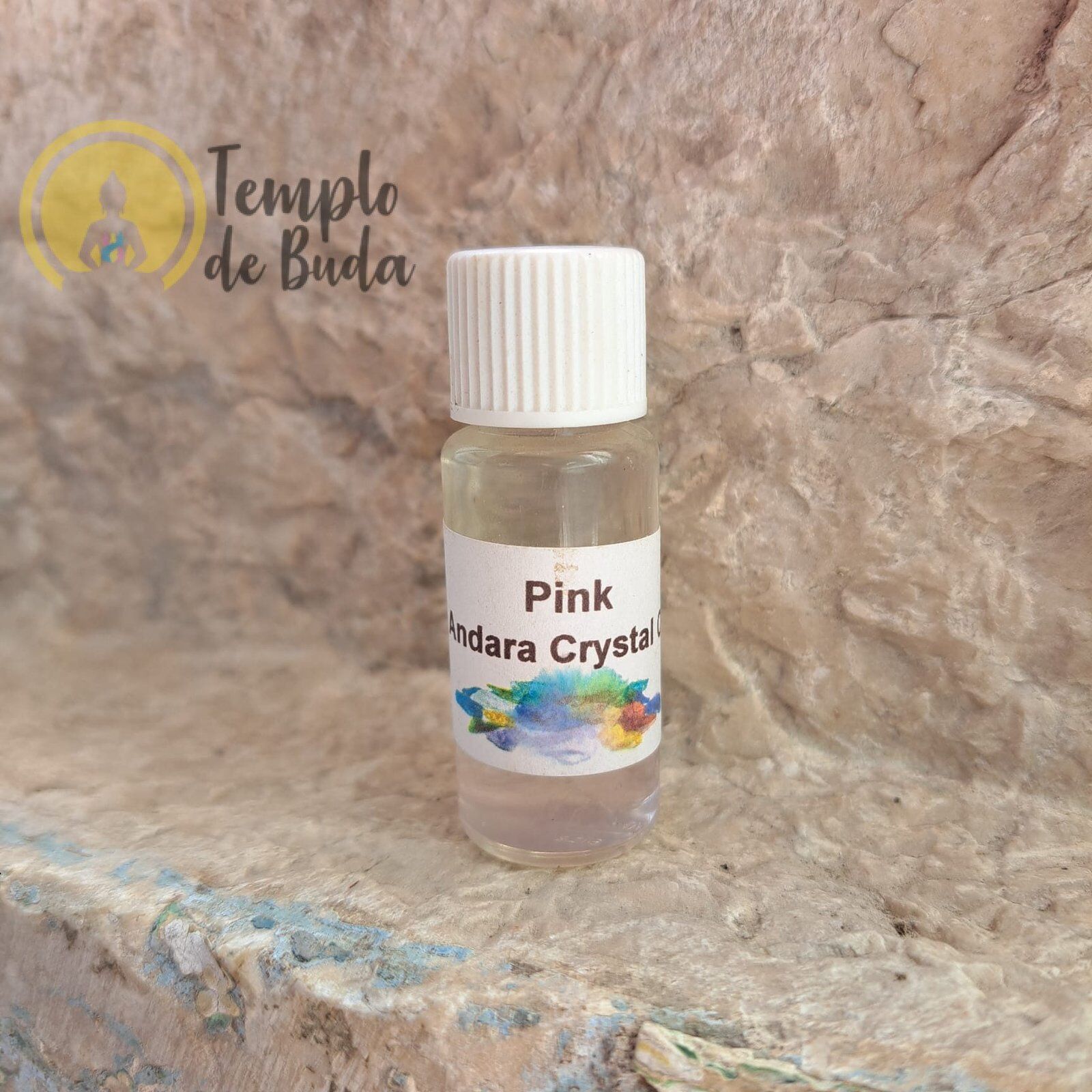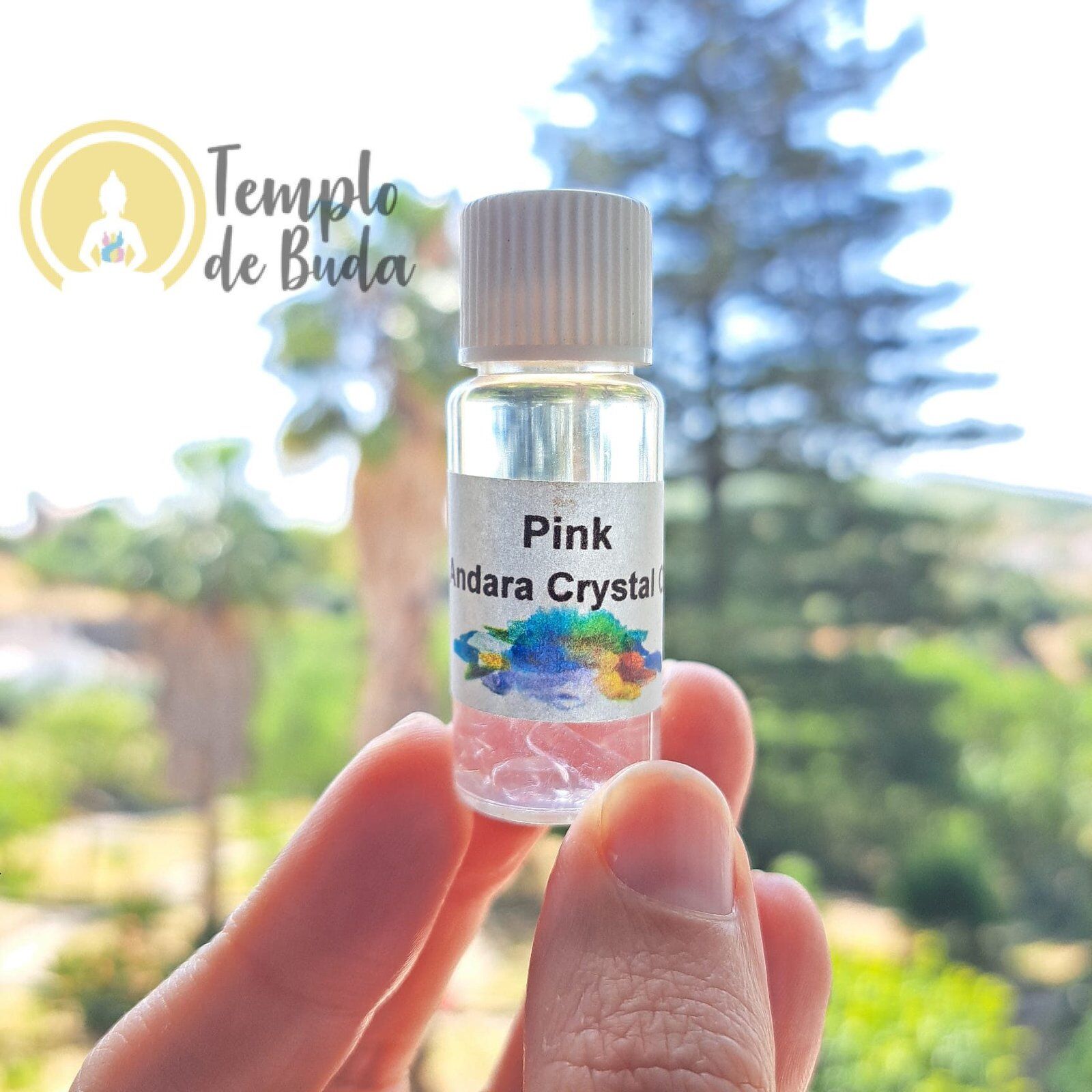 Óleo de Andara Pink, cada frasquinho contém 10 ml e chips de cristais Andara genuínos.