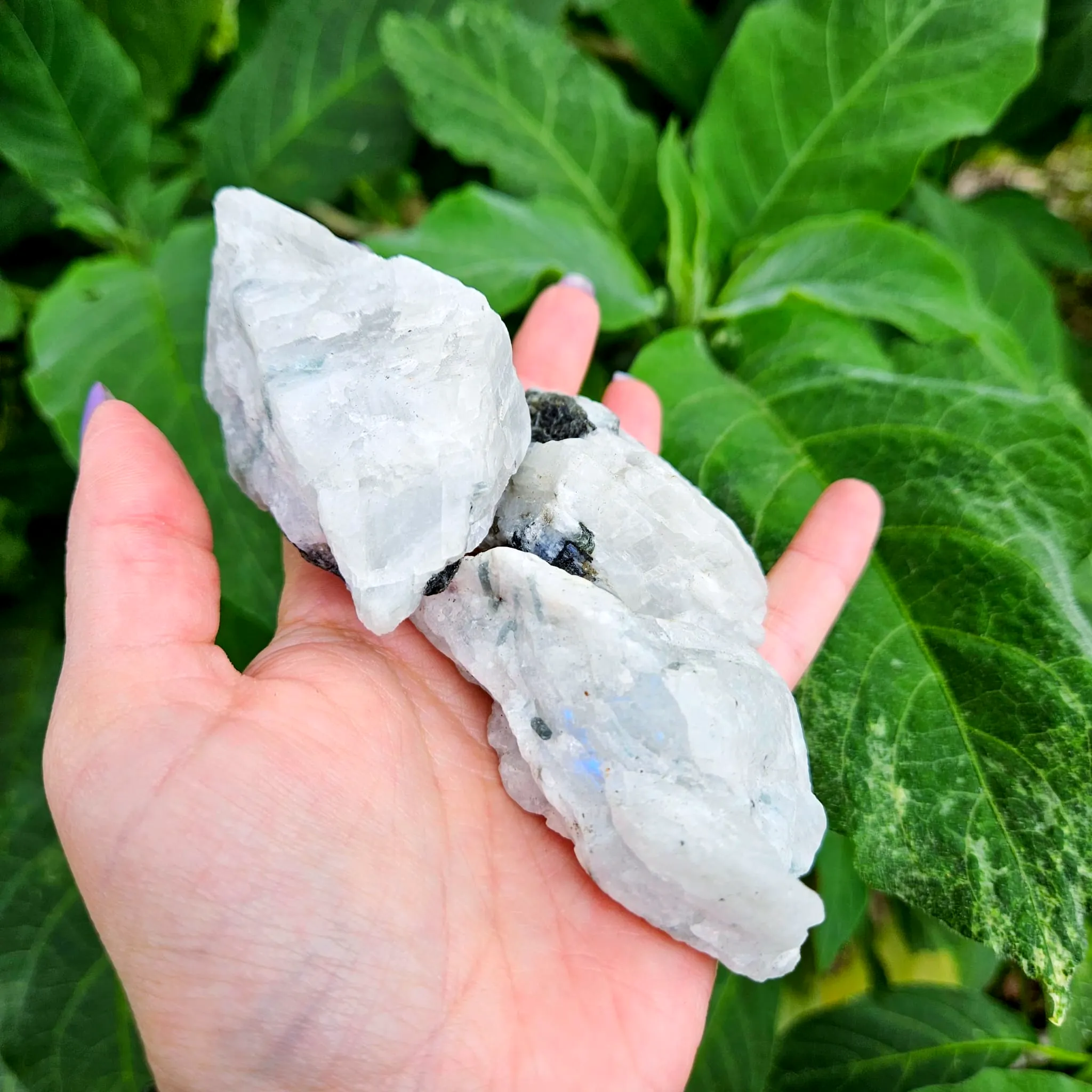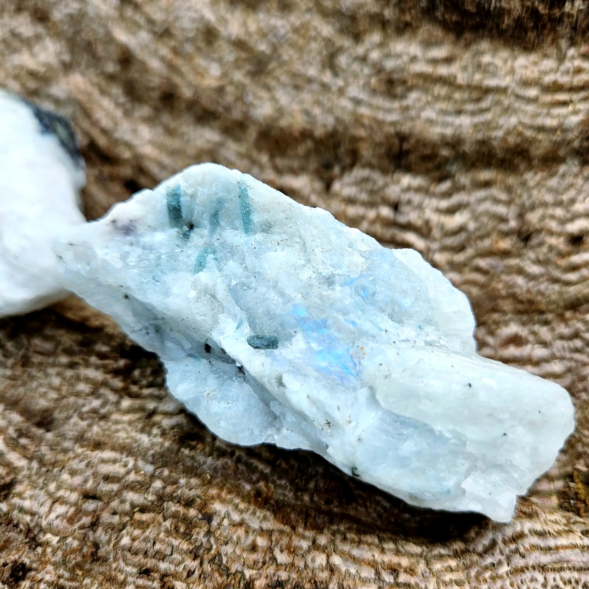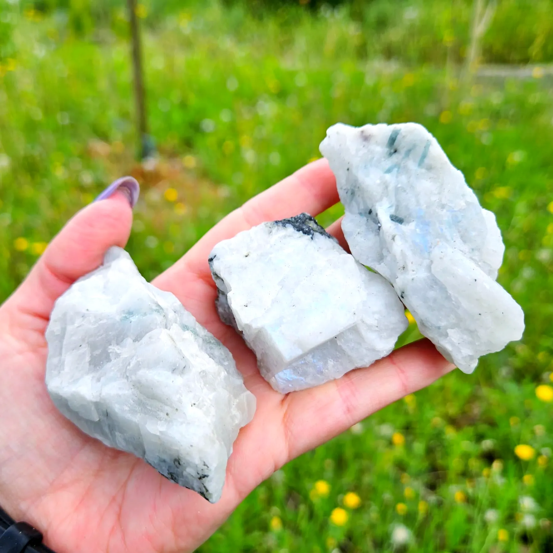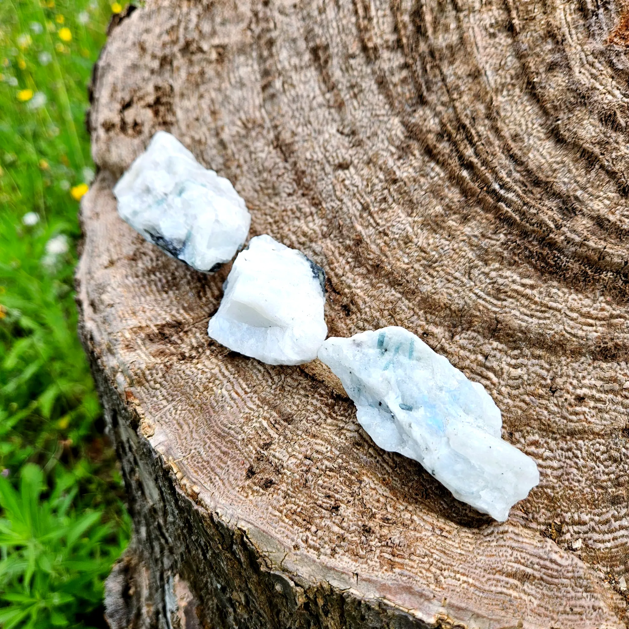 Com seu brilho leitoso e reflexos azulados encantadores, a Pedra da Lua Arco Íris Bruto convida a alma a regressar ao seu estado de pureza, favorecendo a cura profunda e a expansão da consciência.