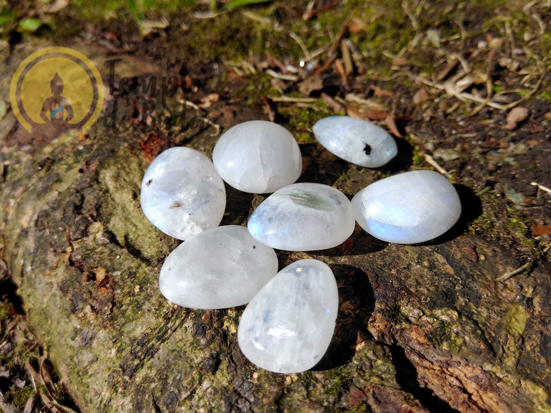 A Pedra da Lua Arco Íris Rolado atua na abertura e ativação dos chakras, favorecendo o alinhamento energético completo. Trabalha especialmente sobre o chakra da coroa (Sahasrara), fortalecendo a ligação ao divino e promovendo o despertar da intuição superior. Nas tradições védicas, pedras lunares como esta são consagradas a Chandra (Lua), regente da mente e da emoção.