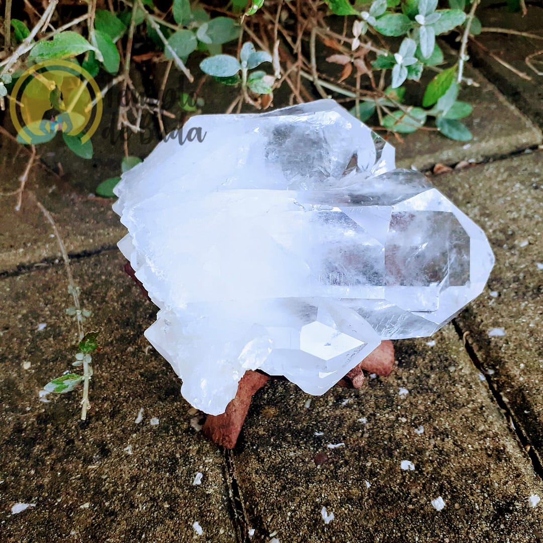 Ponta de Quartzo Cristal Tripla, mais propriamente um Quartzo Hialino na sua forma mais pura. Possui na base um crescimento de novos cristais. Não possui qualquer tipo de lapidação.