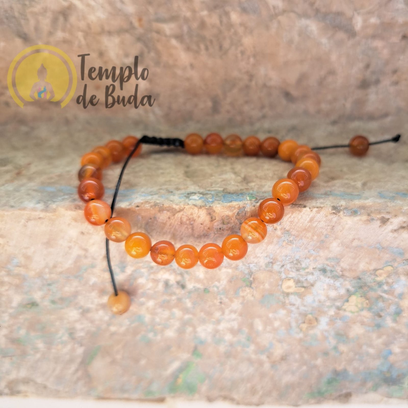Pulseira de Ágata Laranja com Cordão Regulável 6mm