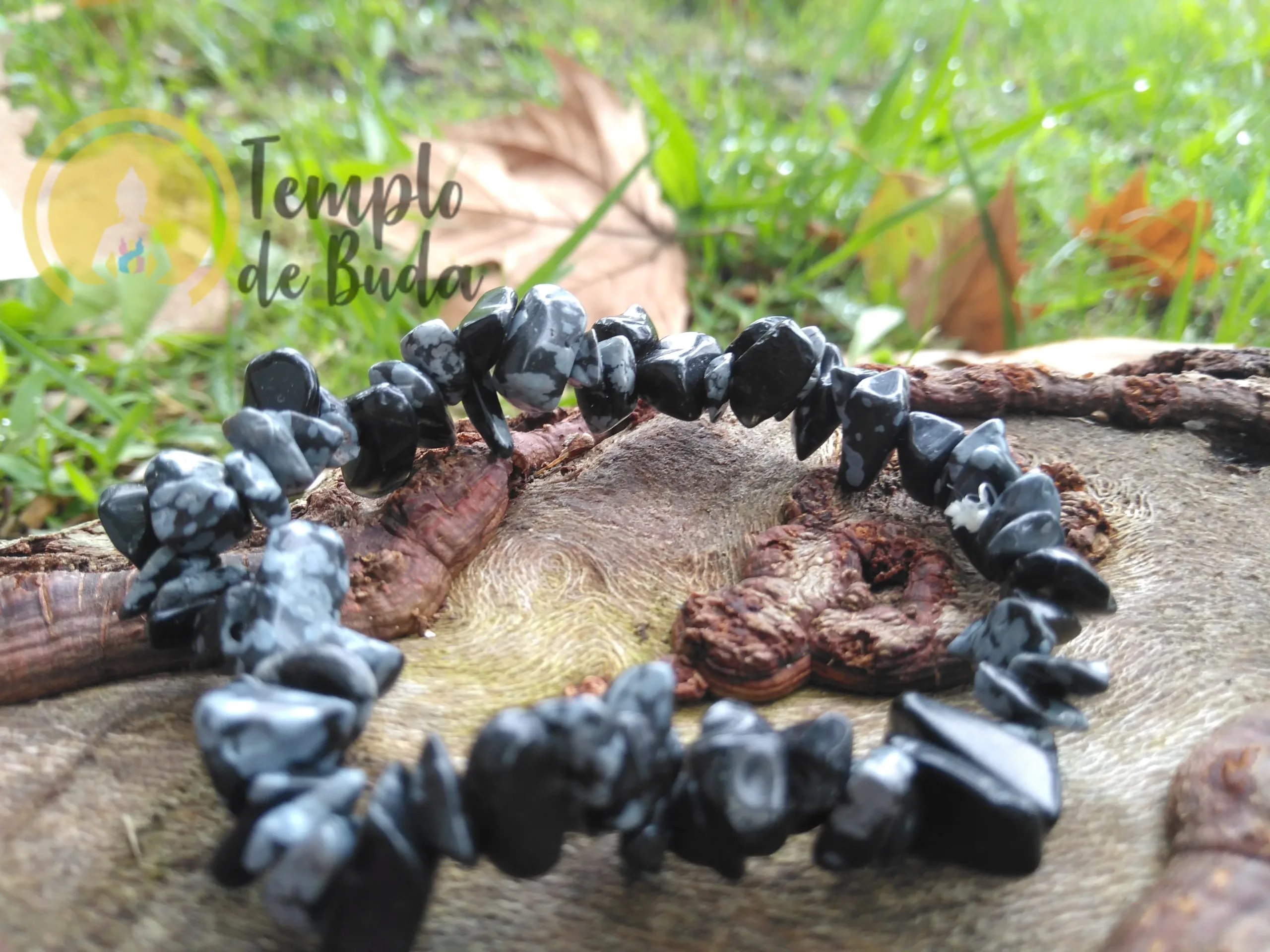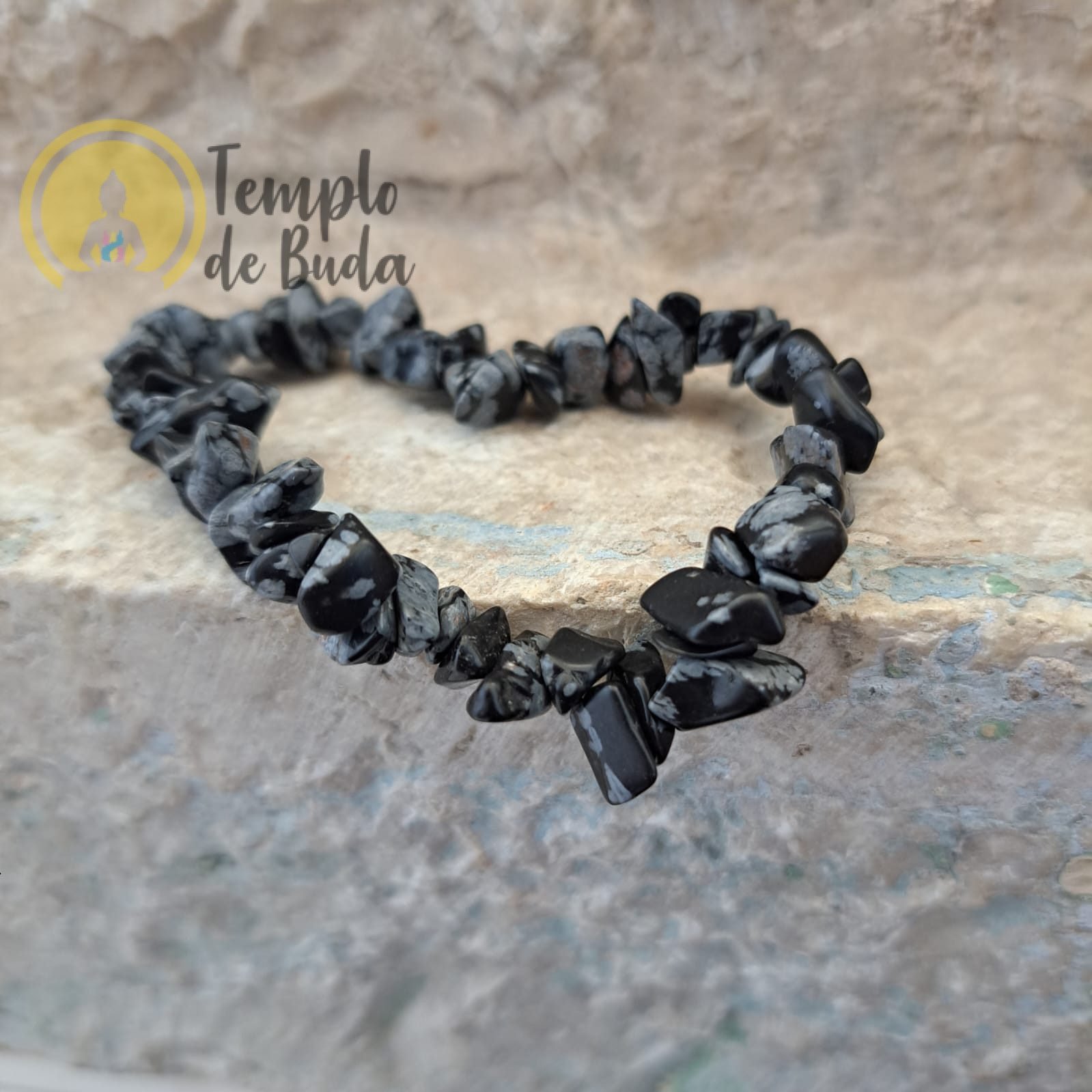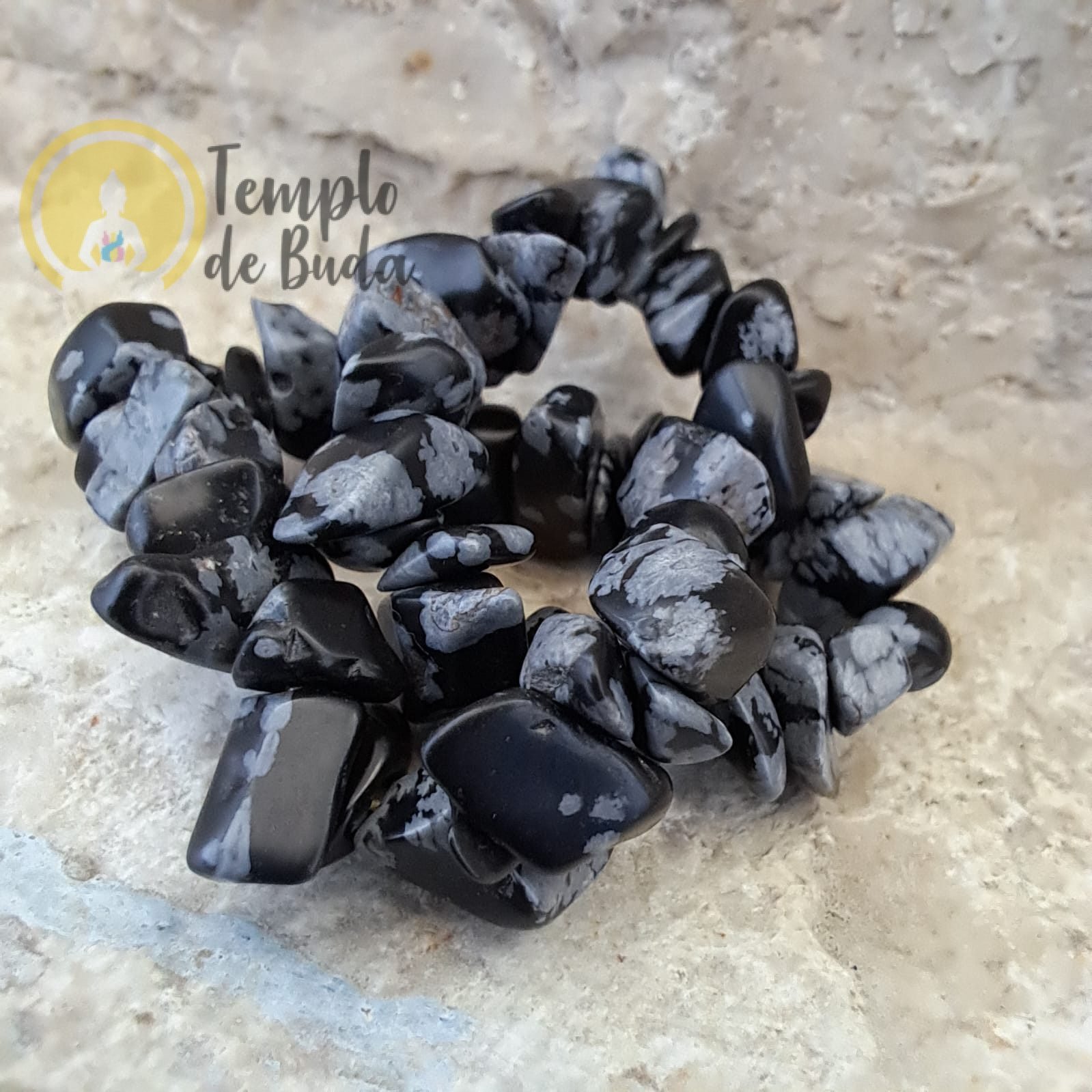 Pulseira elástica de 16cm de Obsidiana Floco de Neve em chips
