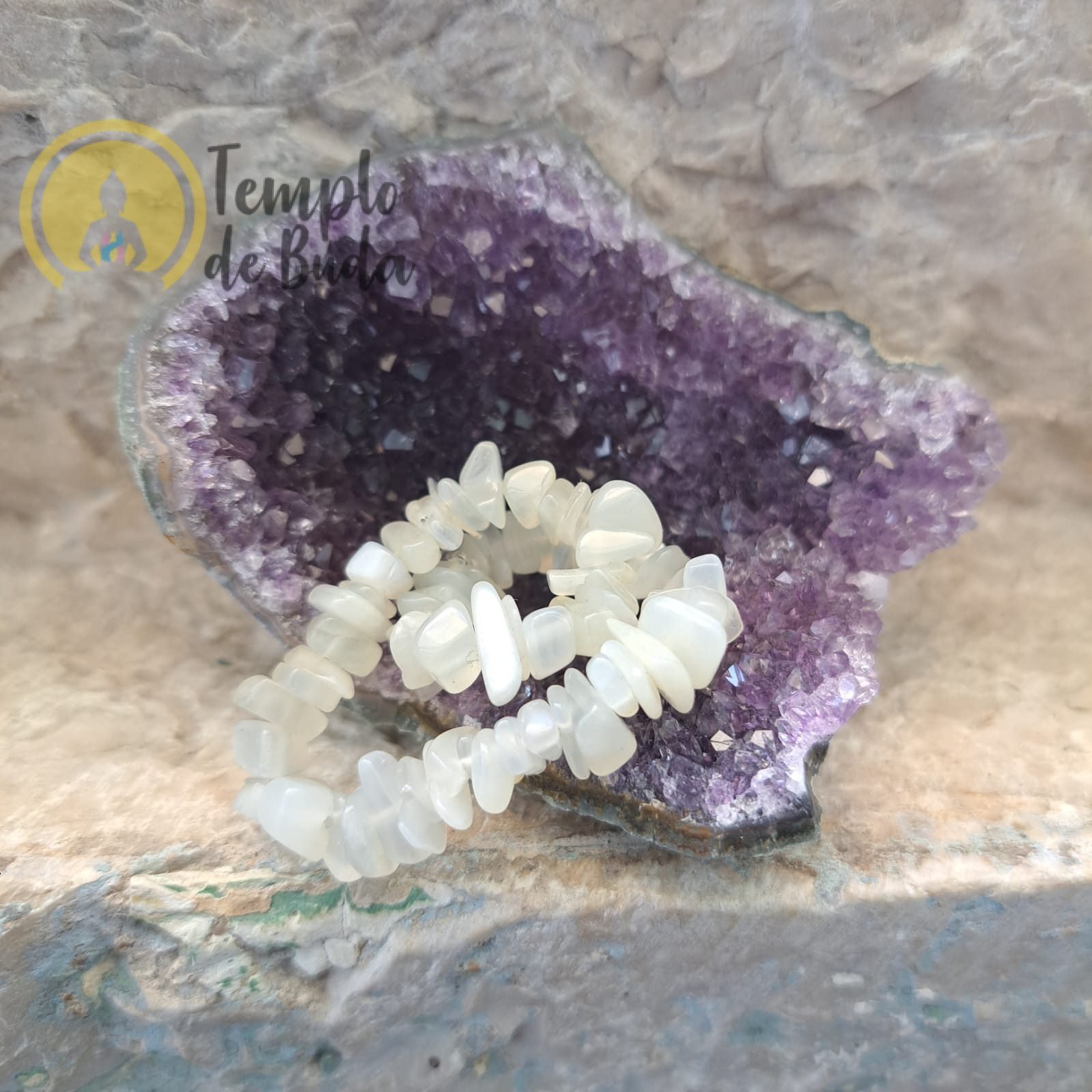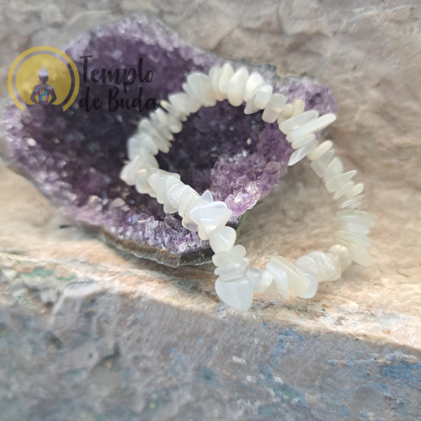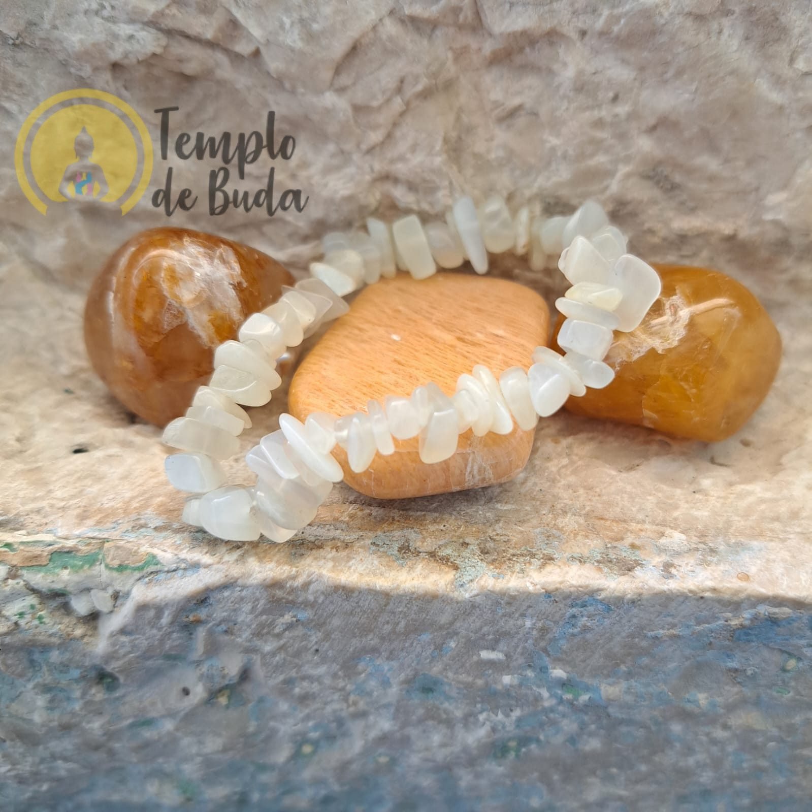 Pulseira elástica de Pedra Lua em chips