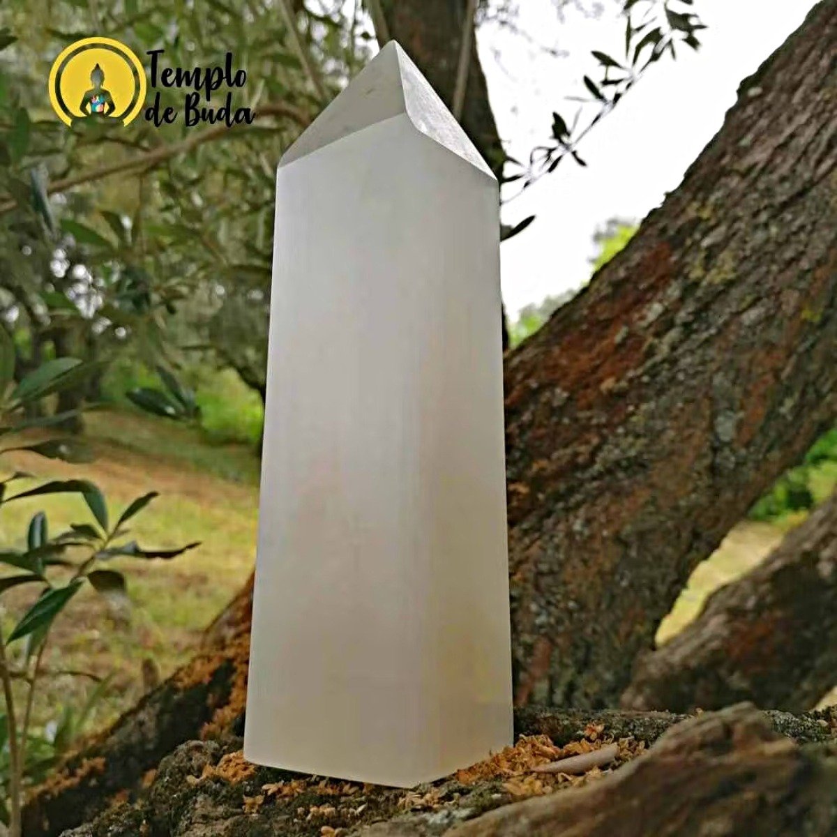 A forma de obelisco amplifica e direciona a energia da selenite. Aqui estão os principais benefícios: