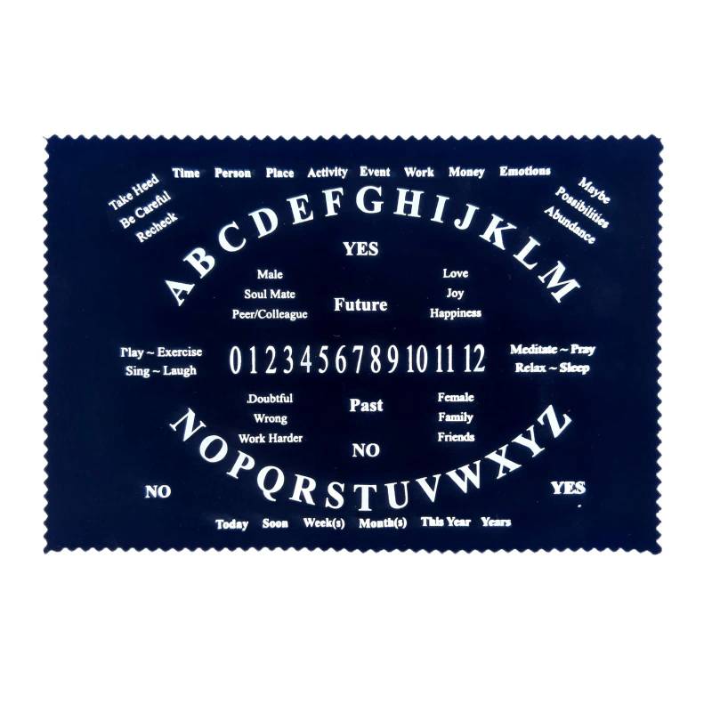 Tapete para Pêndulo alfanumérico em Ingles, para que indique a direcção correcta das perguntas a serem feitas.