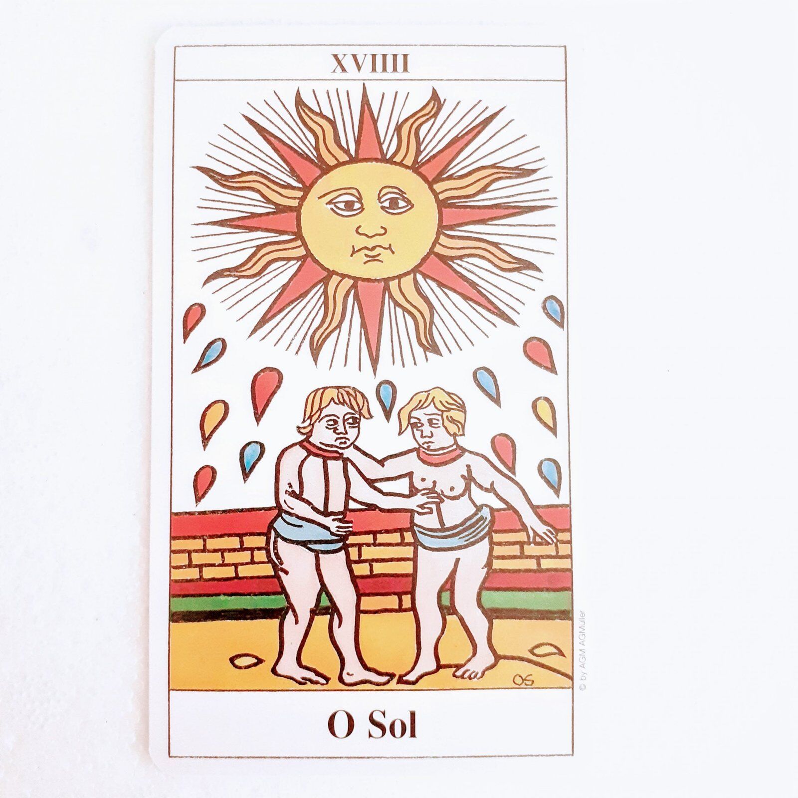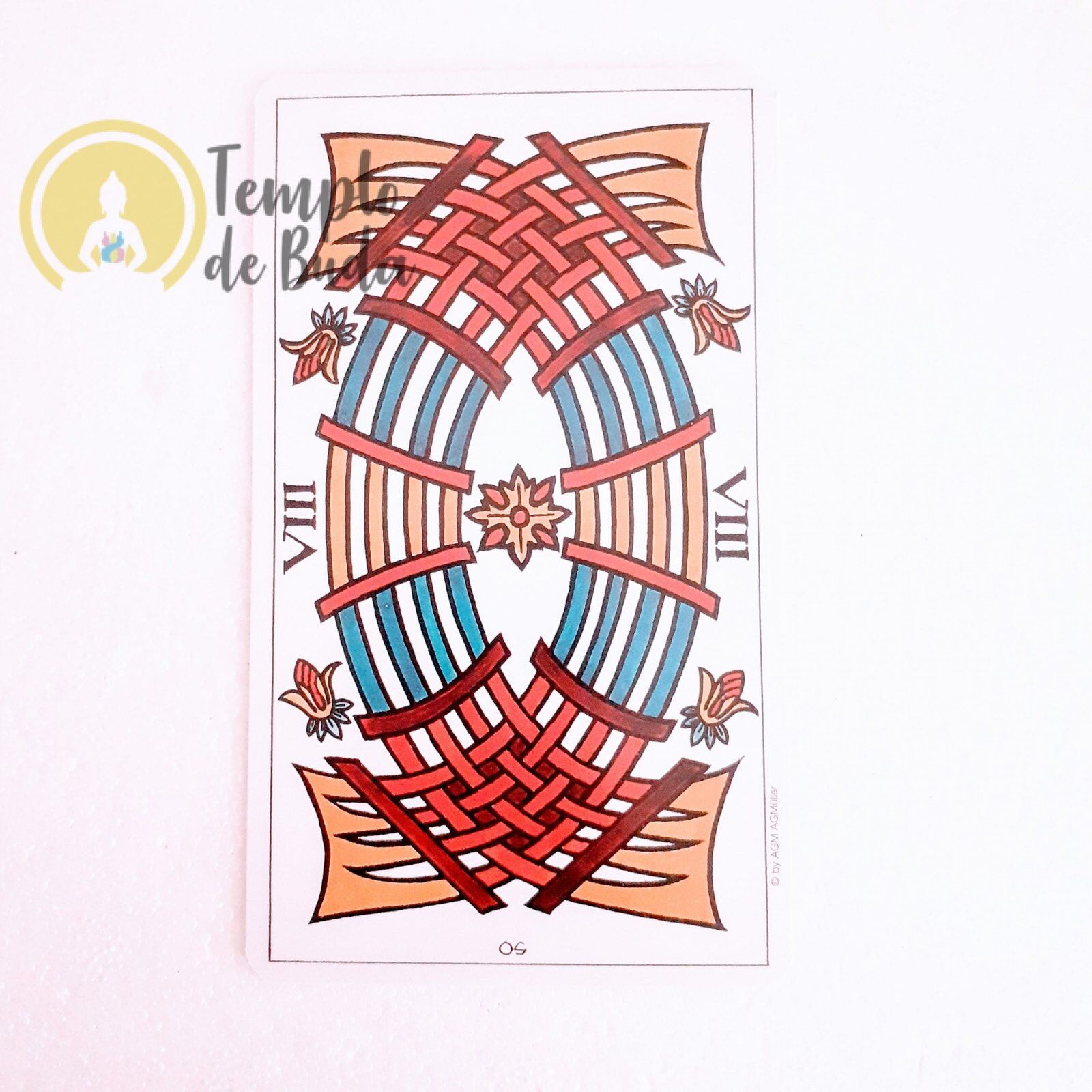 Trata-se de um baralho de 78 cartas, distribuídas em dois grupos: Arcanos maiores e Arcanos menores.