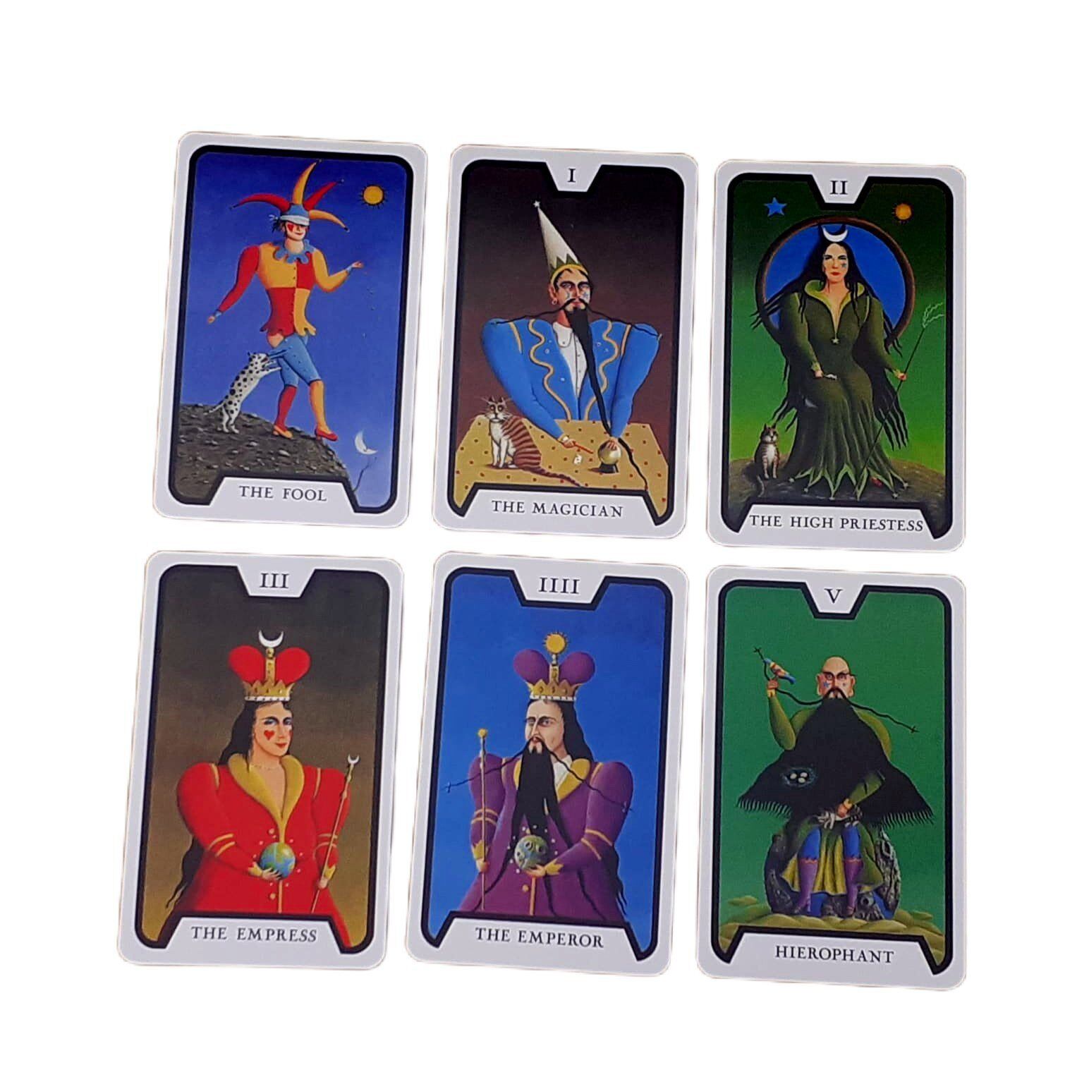 A Temperança derrama um arco-íris entre os seus dois cálices. Estrelas que sugerem novas esperanças decoram as suas asas. Uma tonalidade verde colore a face da Lua. Dá uma sensação suspeita à carta, que é complementada por muitos corvos que descansam nas copas das árvores abaixo. O Mundo mostra a Terra, sobre a qual está uma árvore em flor – simbolizando os elementos positivos da vida, e um rosto que derrama uma lágrima, simbolizando os aspectos negativos da vida. As cartas dos Arcanos Maiores são todas poderosas e criativas, e podem efectivamente representar significados tradicionais do tarot, se o leitor sentir uma ligação com elas.